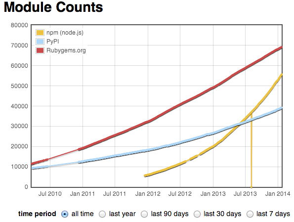 The number of modules seems to have kept growing at about the same speed for the last years.