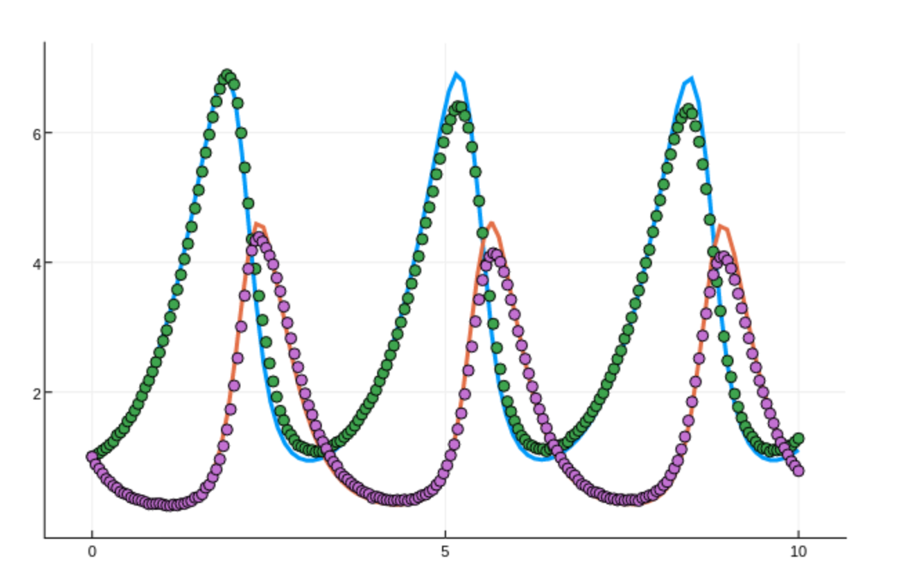 There’s tons we’re doing! I think a lot of what’s next is the integration of symbolic computing into all of our tools. ModelingToolkit.jl is the centerpiece of that push, and while I gave a talk at JuliaCon 2020 showcasing how it can be used as an automated code optimization tool (and gave a PyData 2020 talk on how you can GPU-accelerate ODE solves in R using it!), it’s so much more than that. It’s sometimes hard to numerically do things correctly, like ensuring positivity in an ODE solution can be difficult. But if you log transformed your model, then by definition your solution will always be positive. Right now this is up to the user, but what if we could automatically change the equations you wrote so that, not only are they more efficient, but they are also mathematically easier to solve and estimate? That’s the scope of ModelingToolkit, and if that interests you then you might want to stay tuned to that and its sister product NeuralSim which is about automated surrogate acceleration for the ModelingToolkit modeling language.